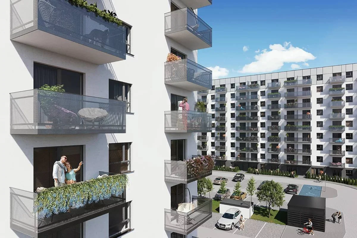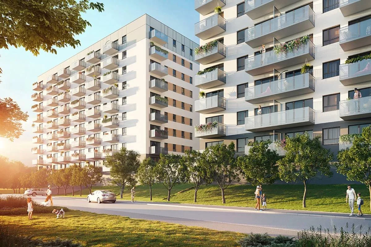 three 8-etvented buildings with a total of 666 apartments – Each with a balcony or a terrace with a kindergarten on the ground floor.